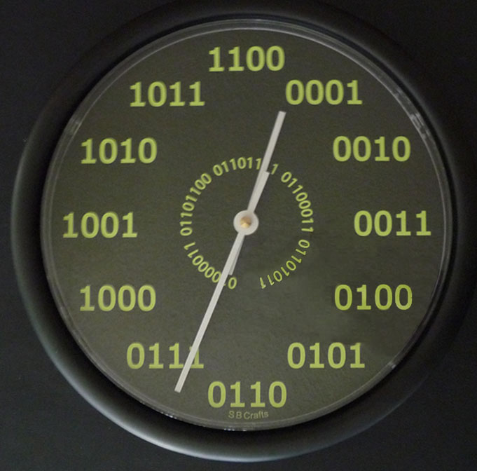 No second hand is included, since it could be disconcerting to hear a tick every 23 microdays.