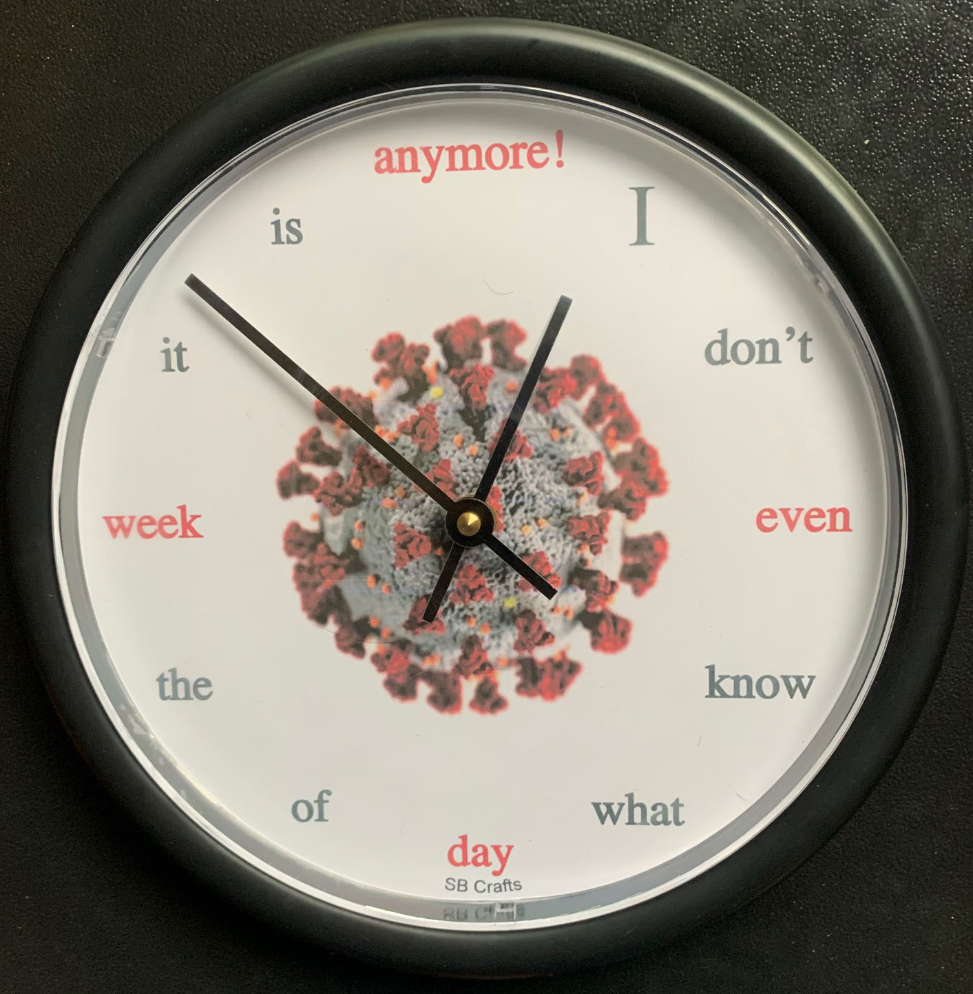 Note that these clocks don't actually tell time - they may be fast, slow, floppy or stagnant. Thus we are selling them at cost, i.e. 50% off, during the pandemic. Any amount you choose to pay above cost will be donated to a local Covid relief fund. A working version may be available upon request. There's no second hand since we think silence is more important than the semblance of precision these days.